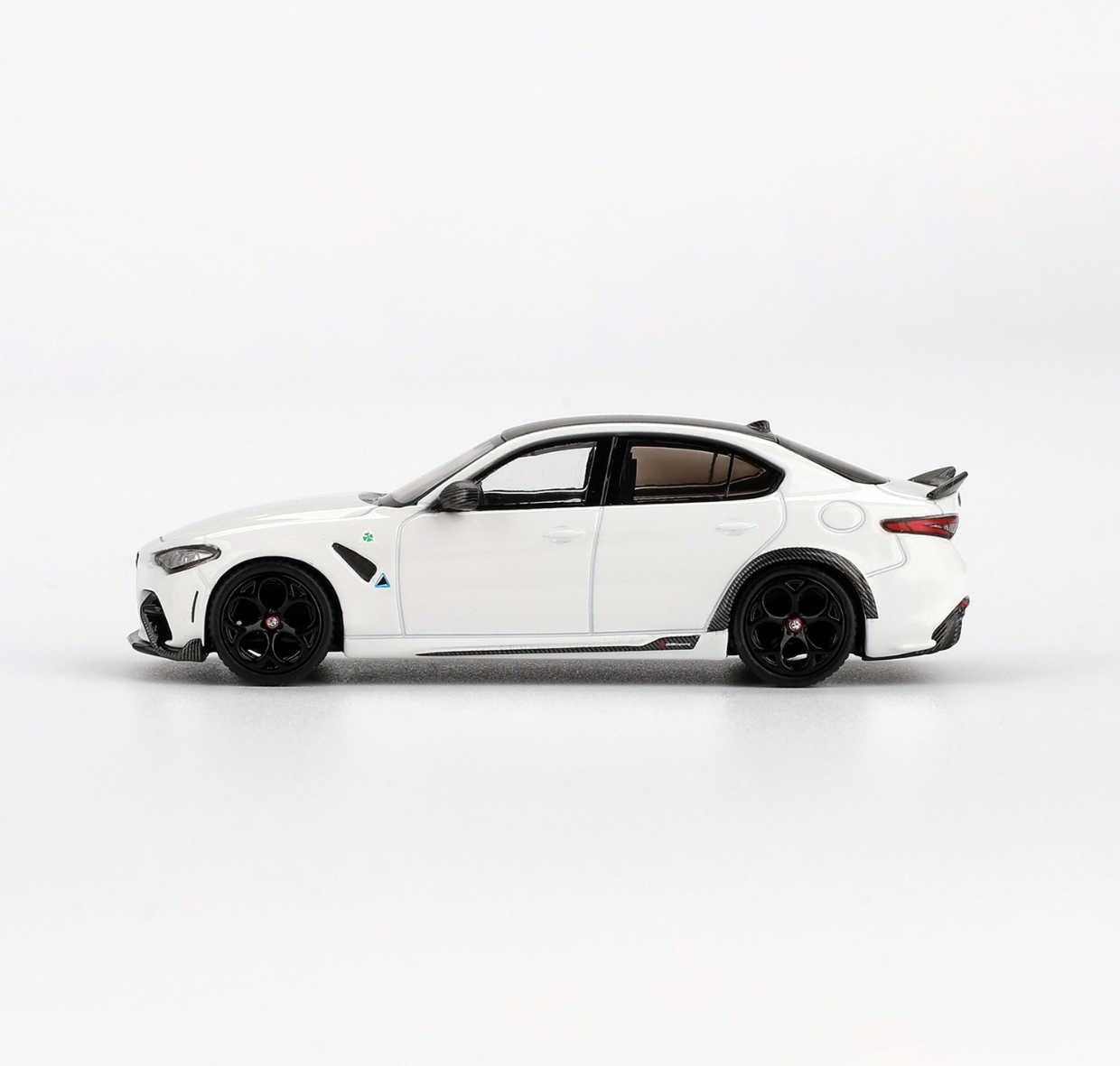 This 1:64 scale model by BBR Models captures the essence of the Giulia GTA in a white finish, showcasing its sculpted bodywork, widened stance, dual center exhausts, and signature aerodynamic splitter. Model BBRDIE6425 stands out for its precision die-cast construction, fine tampo detailing, and photo-etched accents that bring this limited super-sedan to life at collector scale.
